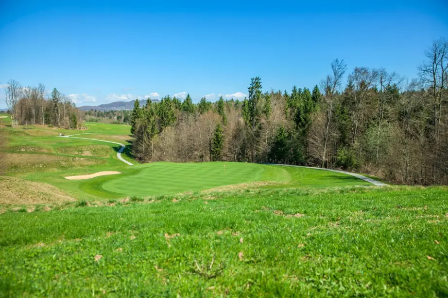 Der Golfclub ist ca. 12 km östlich vom Hotel entfernt. Das faszinierende Alpenpanorama begleitet den Golfer ständig auf den großzügig angelegten 18 Spielbahnen, die auf hügeligem Gelände teils durch offenes und teils bewaldetes Gelände ziehen. Golffreude kommt bei den 67 teils nach schottischem Vorbild angelegten Pottbunkern und den Grüns mit bis zu 1.200 m² auf.